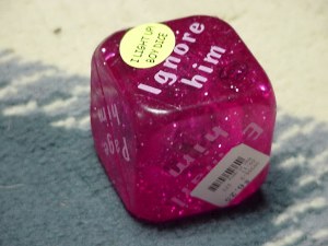 This would solve all my problems. I would now know what men in my life were really out there for me. I had to know and this thing was going to work better than any of my 8 balls did I could tell. I mean how many times do you come across a glitter filled die that can tell you the future I had to explore. And explore I did.